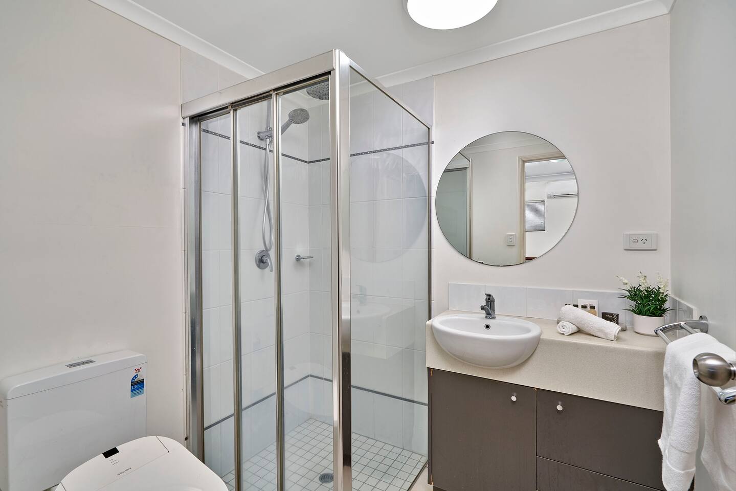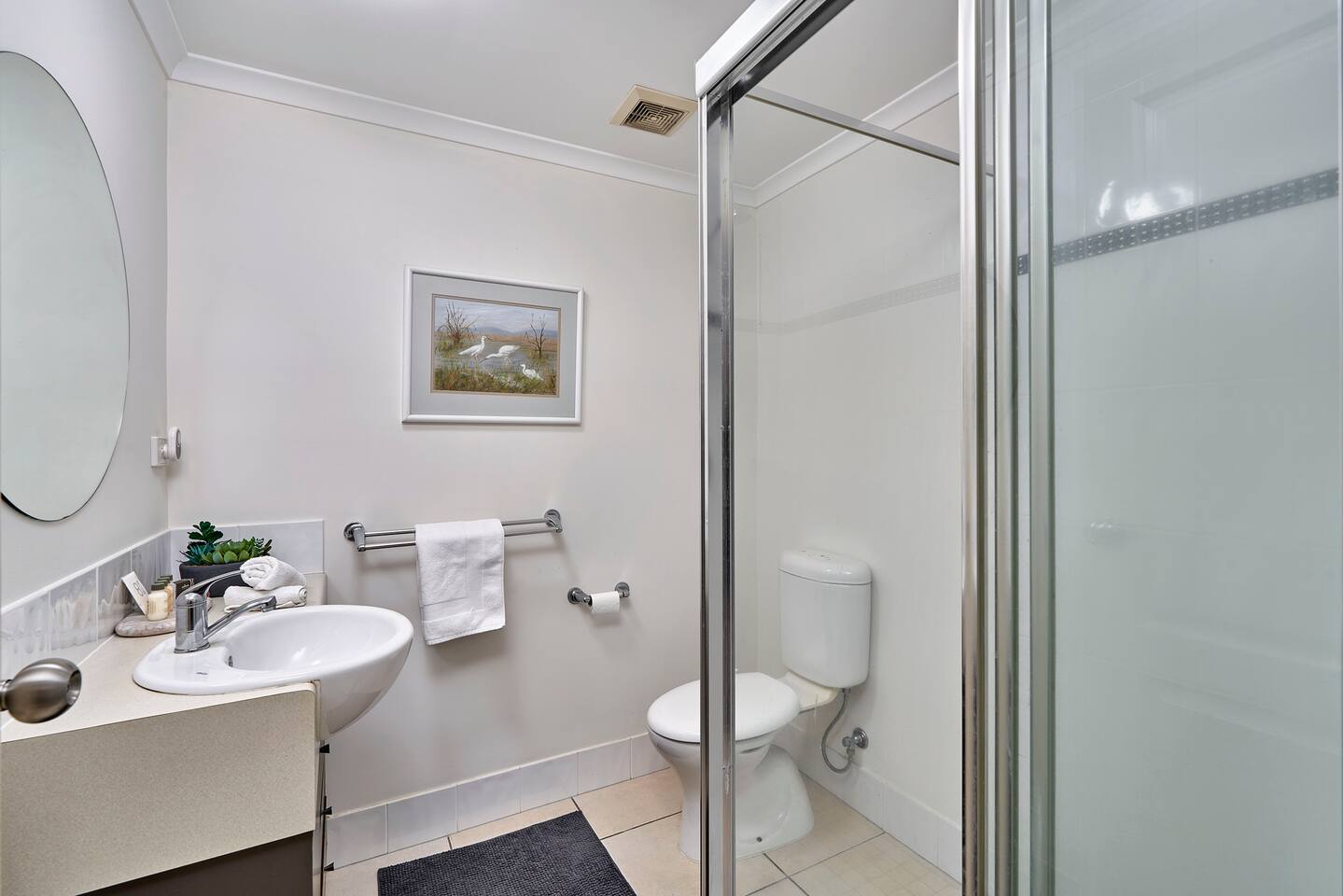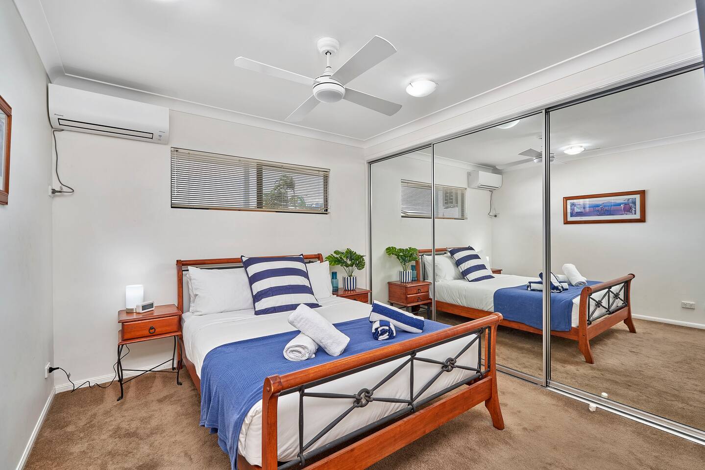This bright, family-friendly apartment is designed for comfort and convenience, sleeping up to five guests with one queen bed, one double bed and a fold-out bed. The open-plan living area flows onto a private balcony with pool views. Inside, you’ll find a modern bathroom, full kitchen, internal laundry and fast Wi-Fi. Guests have access to the resort-style pool, BBQ area and secure gated parking within the Retreat on Pease complex.